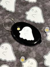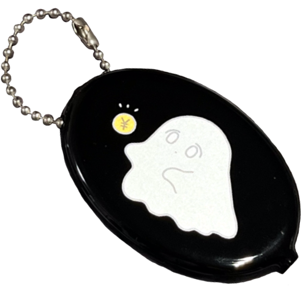 『ちゃりんとおばけ』柄のラバーコインケースです。