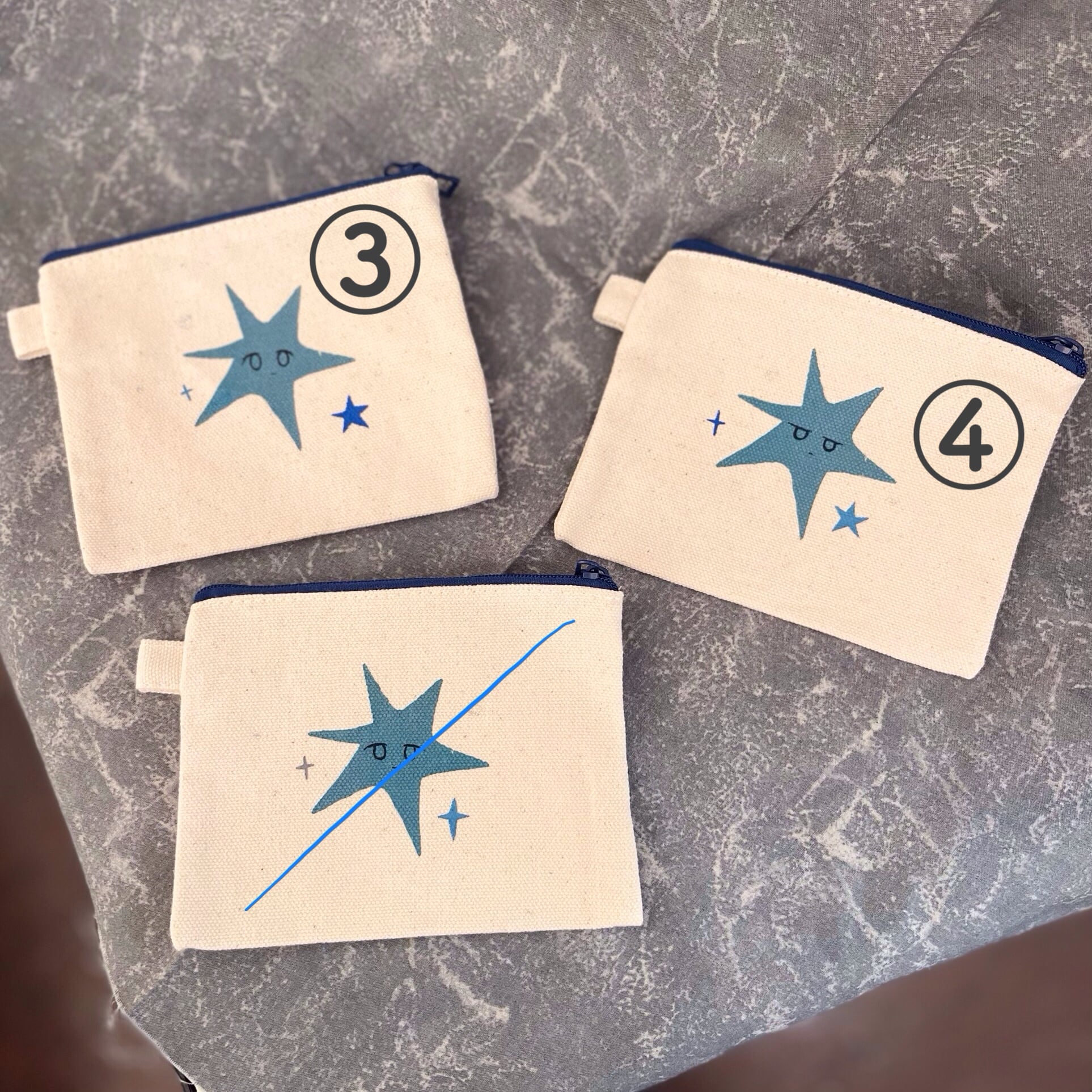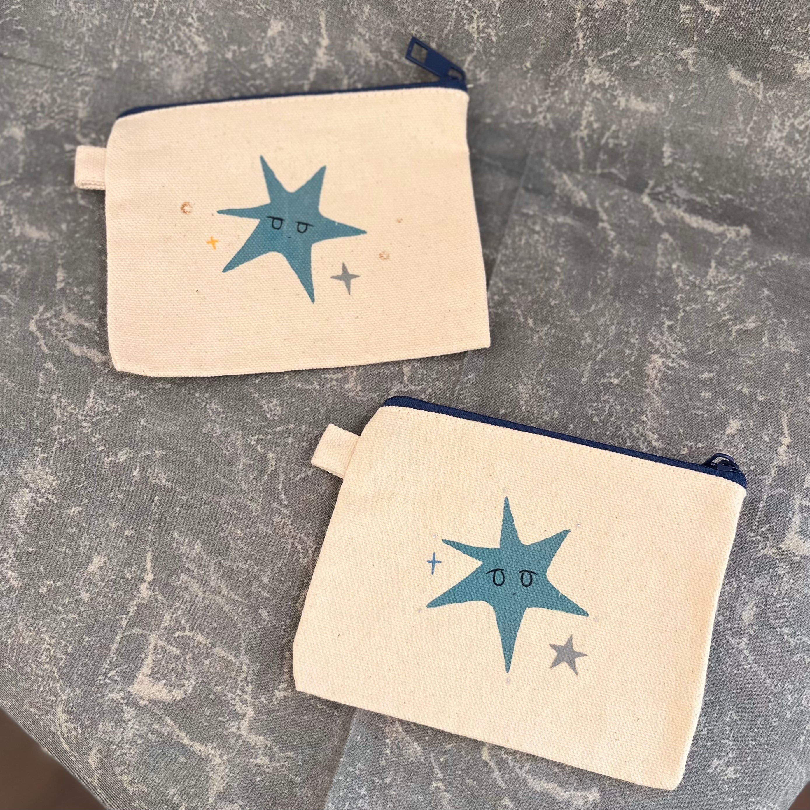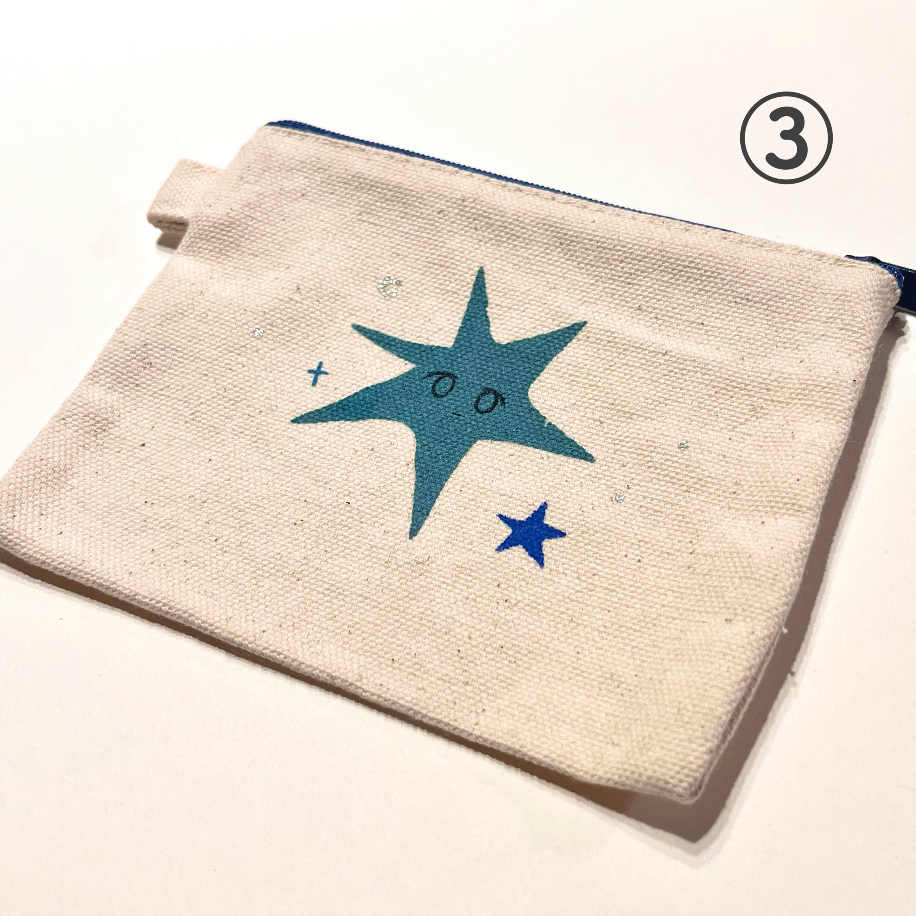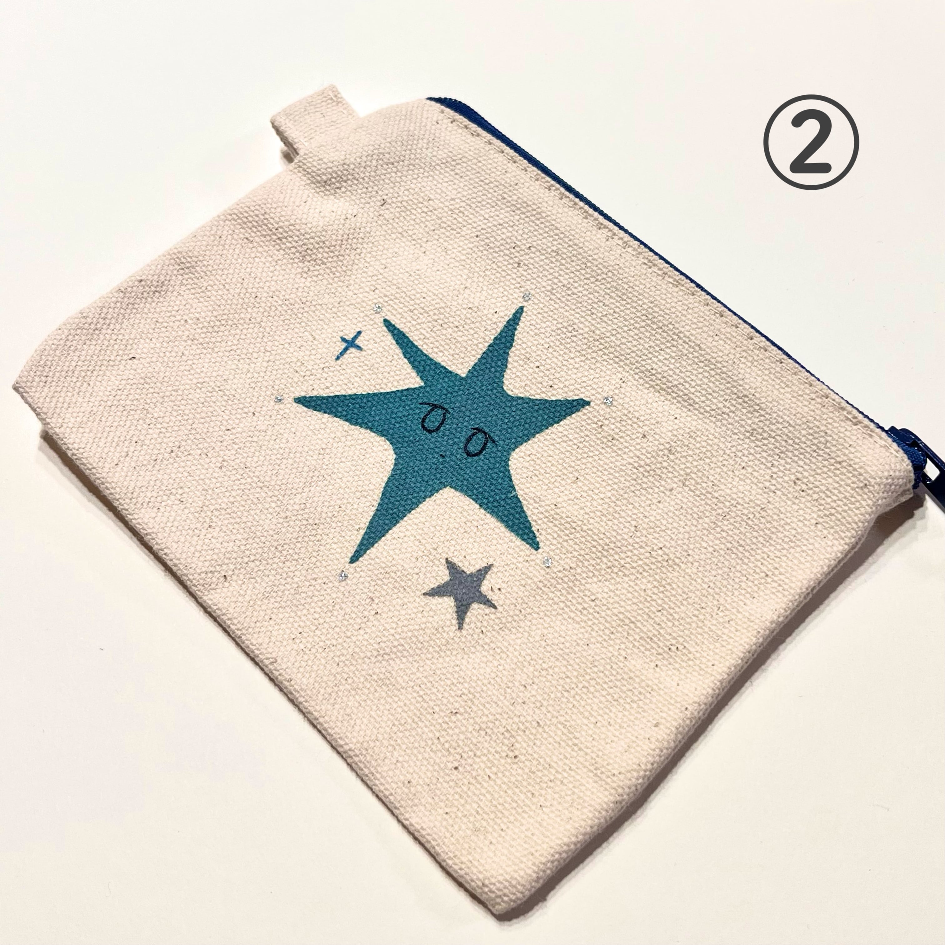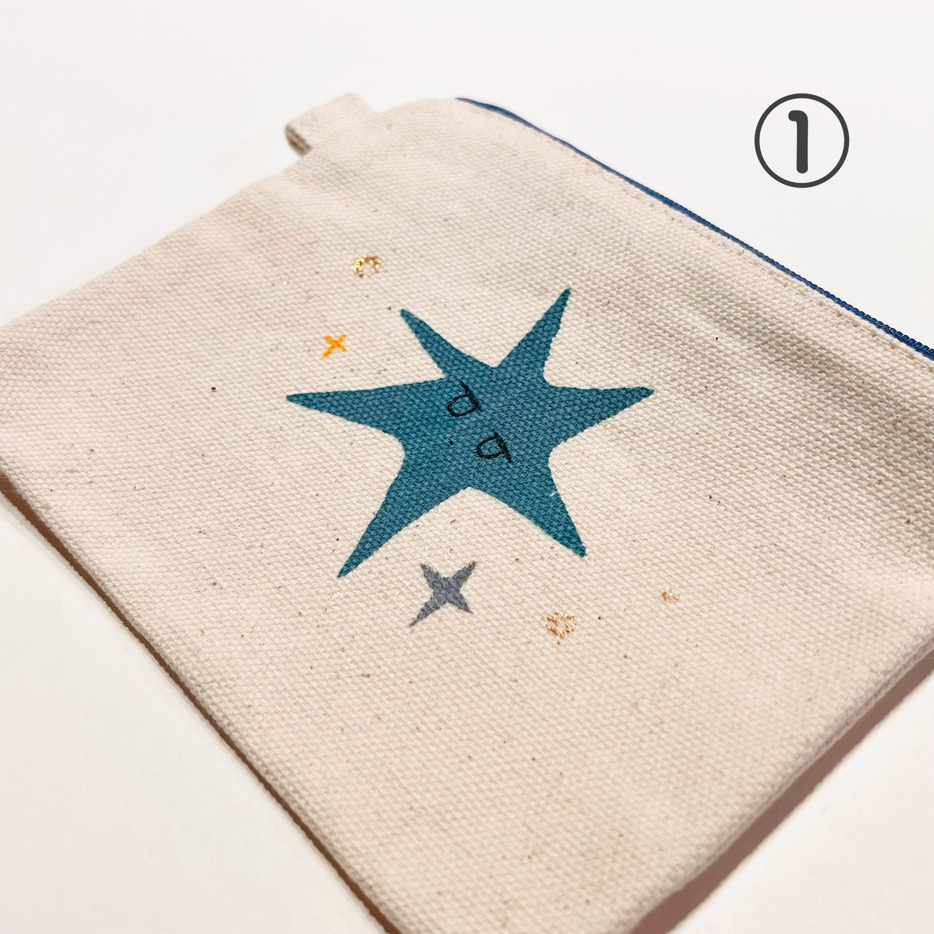 シルクスクリーンと布えのぐを使用しての手刷り&手描きミニポーチです